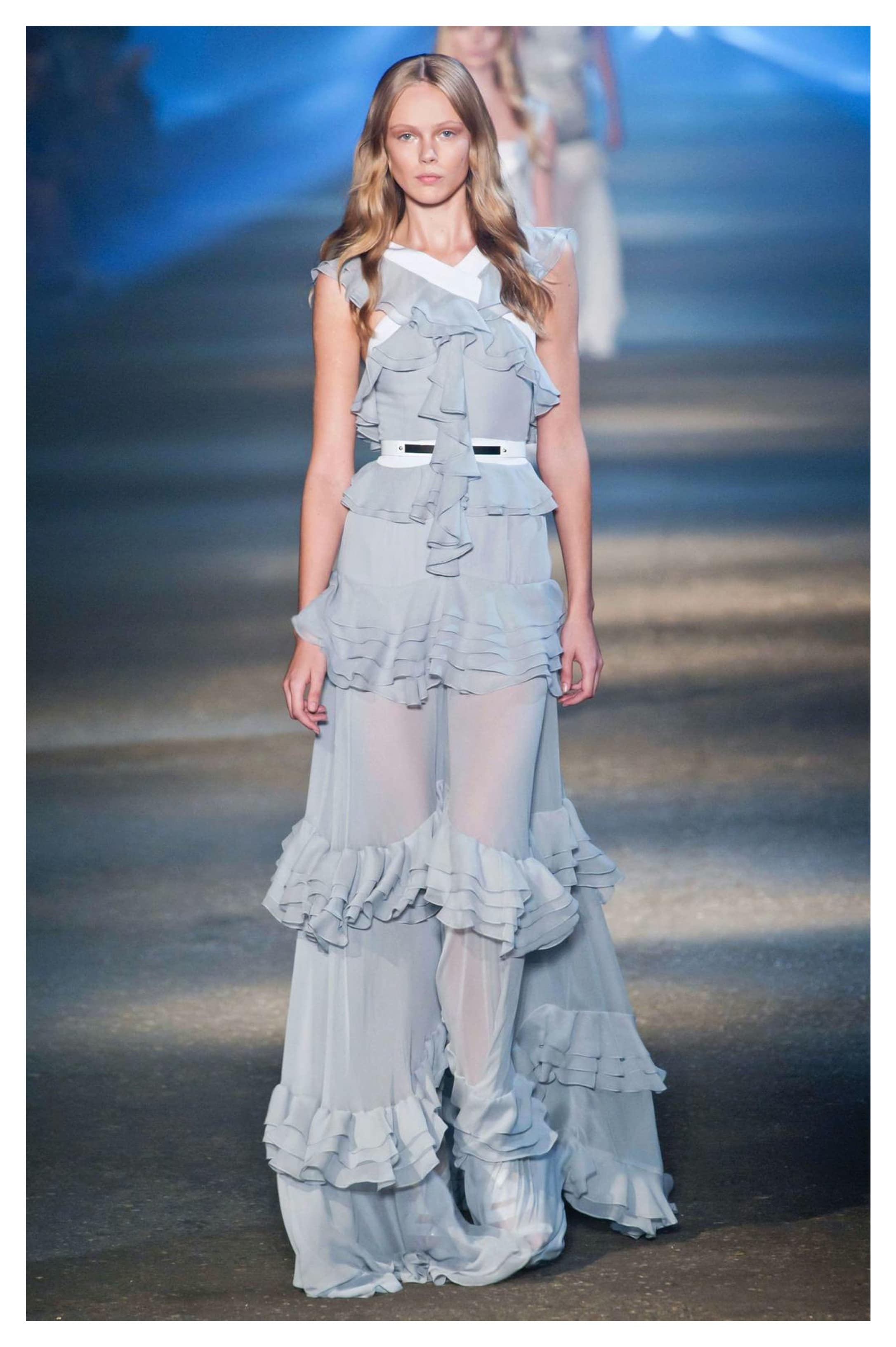 prabal gurung’s layered, grey chiffon has me booking resorts for vow renewal number five. i must get my hands on that dress, my legs through that skirt, my triceps through those ruffled shoulder boughs, that belt around my waist. oh yes, she probably will NOT be mine.